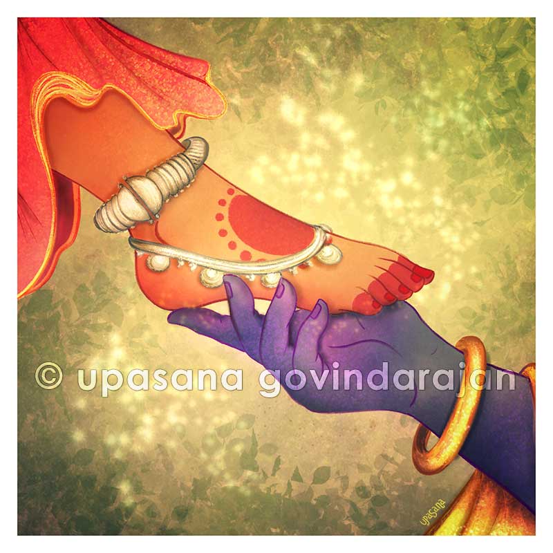 Jayadeva stopped. How could anyone, even Radha Rani, place their feet on the head of the Supreme Lord Krishna, master of the universe ? It didn’t seem acceptable. He almost felt guilty of having such a thought come to his mind. He put his pen down and went to take a shower.