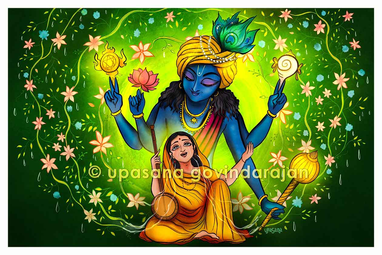 more to giridhar gopal doosro na koi…He who wears the peacock feather on his crown, Wielder of shankha-chakra-gada-padma, only You are mine.